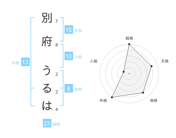 別府 うるはさんの外格は13画の5点!