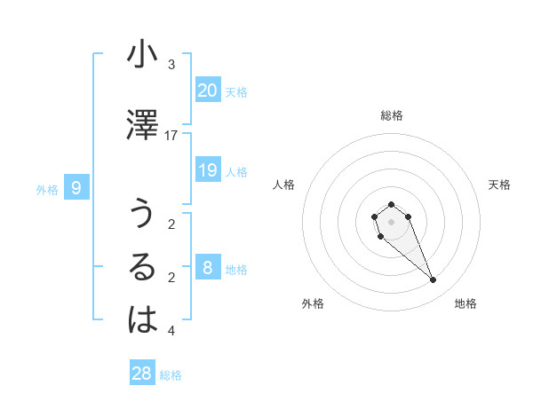 小澤 うるはさんの地格は8画の4点!