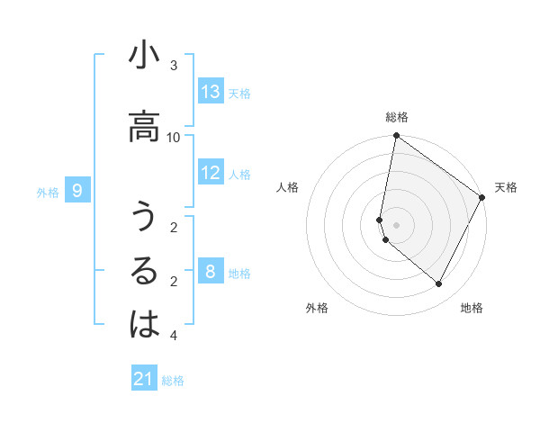 小高 うるはさんの天格は13画の5点!