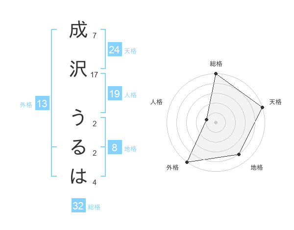 成沢 うるはさんを姓名の画数から五運を鑑定