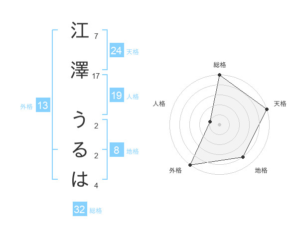 江澤 うるはさんの総格は32画の5点!