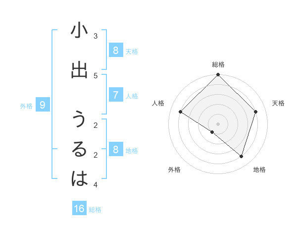 小出 うるはさんの天格は8画の4点!