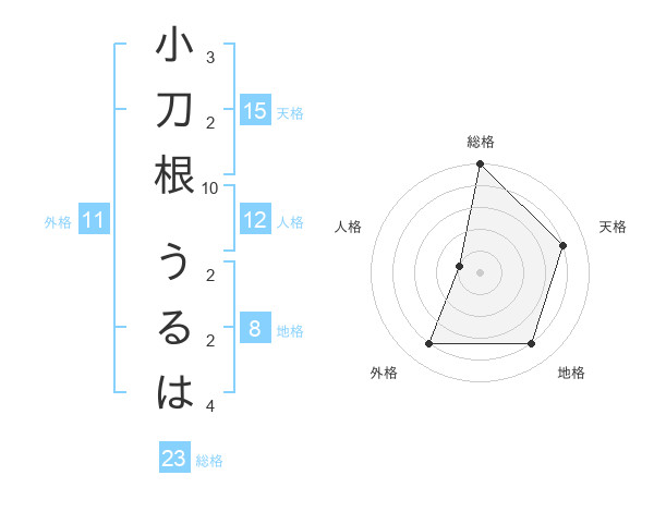 小刀根 うるはさんを姓名の画数から五運を鑑定