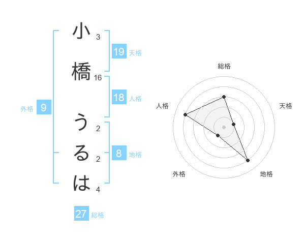 小橋 うるはさんの総格は27画の3点!