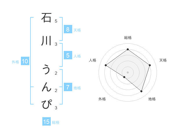 石川 うんぴさんを姓名の画数から五運を鑑定