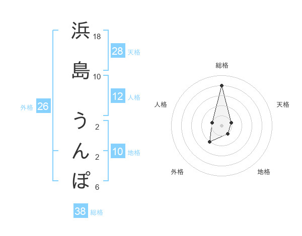 浜島 うんぽさんを姓名の画数から五運を鑑定