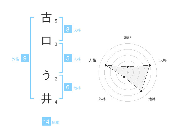 古口 う井さんの総格は14画の1点!