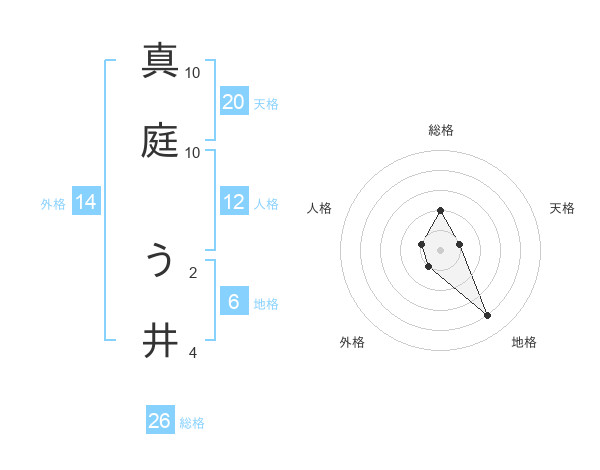 真庭 う井さんの総格は26画の2点!