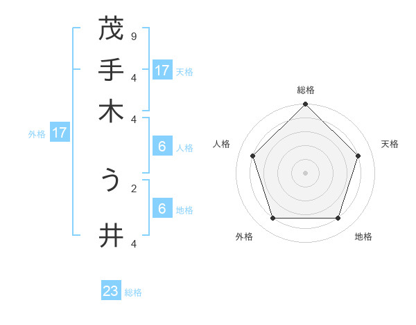 茂手木 う井さんを姓名の画数から五運を鑑定
