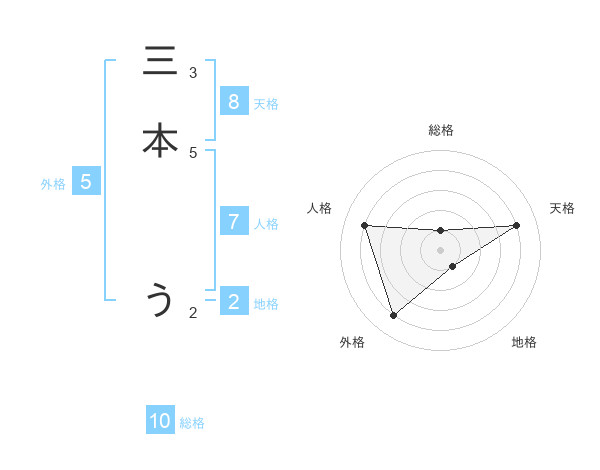 三本 うさんの天格は8画の4点!