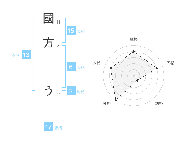 國方 うさんの外格は13画の5点!