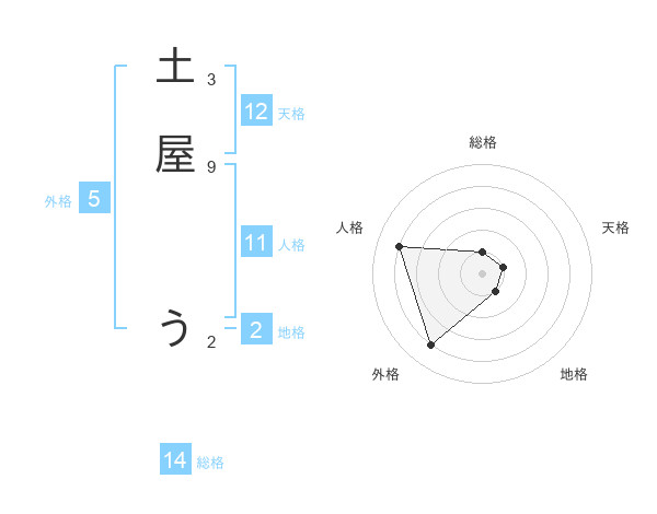 土屋 うさんの天格は12画の1点!