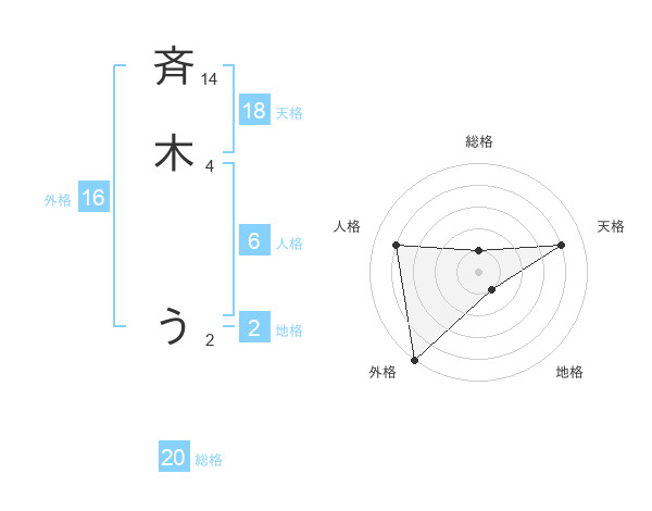 斉木 うさんの外格は16画の5点!