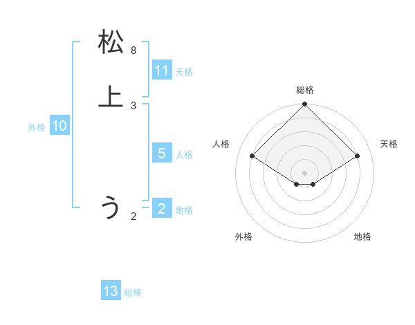 松上 うさんの総格は13画の5点!