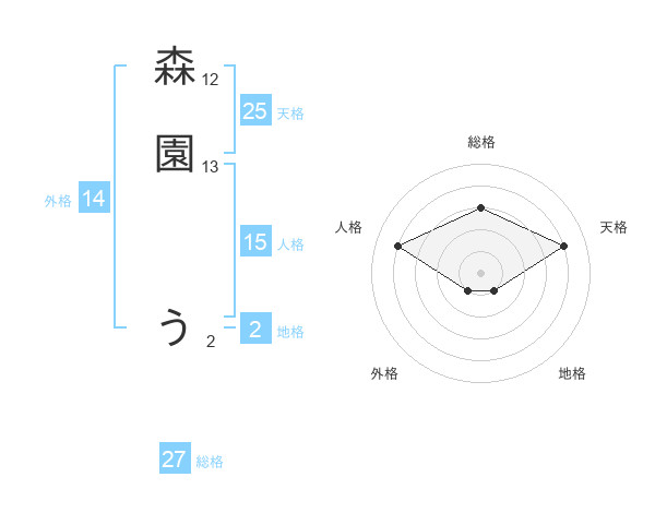 森園 うさんの天格は25画の4点!
