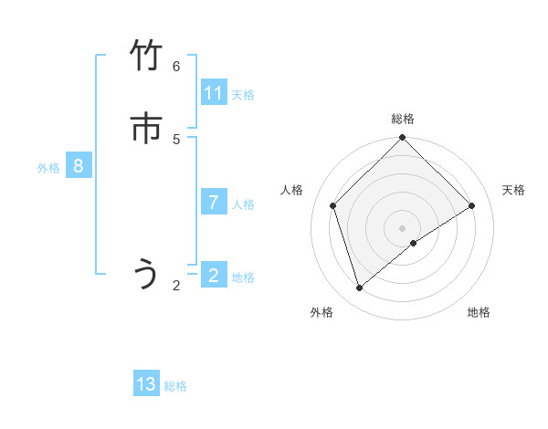 竹市 うさんの総格は13画の5点!