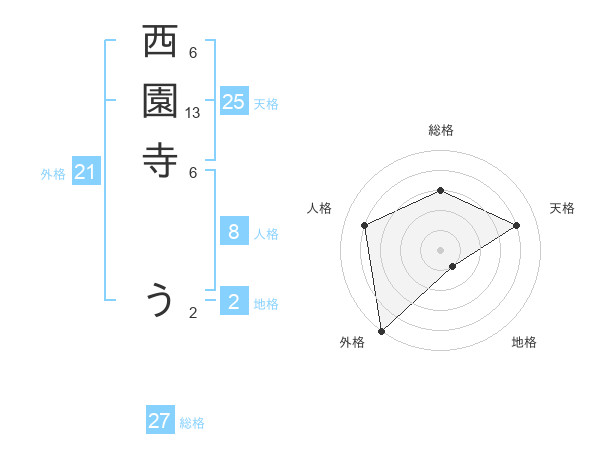 西園寺 うさんの外格は21画の5点