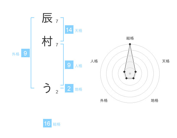 辰村 うさんの総格は16画の5点!