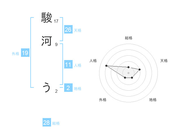 駿河 うさんの天格は26画の2点!