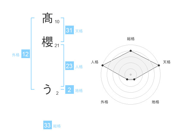 髙櫻 うさんの天格は31画の5点!