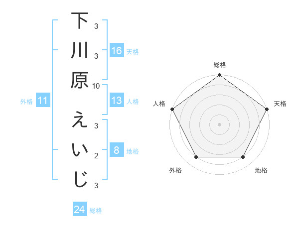 下川原 えいじさんの総格は24画の5点!