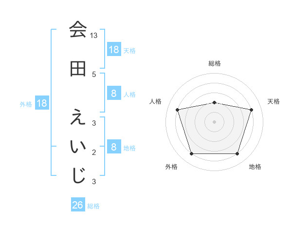 会田 えいじさんの総格は26画の2点!