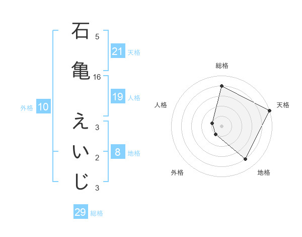 石亀 えいじさんの総格は29画の4点!