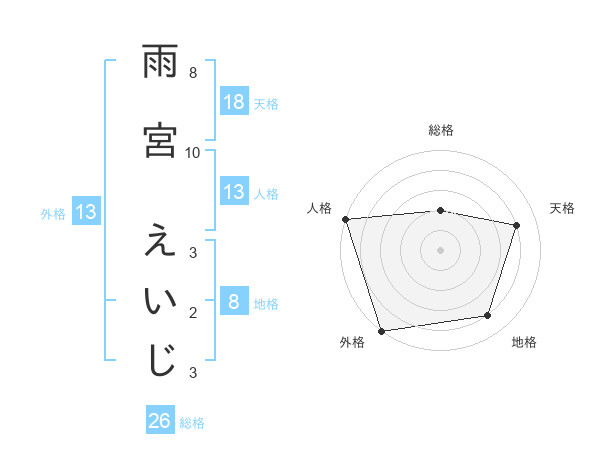 雨宮 えいじさんを姓名の画数から五運を鑑定