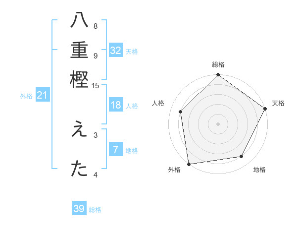 八重樫 えたさんの総格は39画の5点!