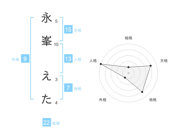永峯 えたさんの天格は15画の4点!