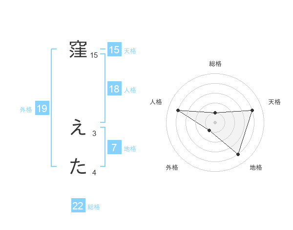 窪 えたさんの総格は22画の1点!