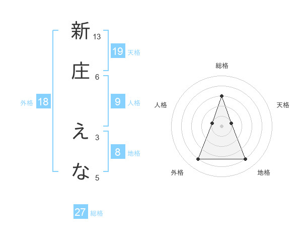 新庄 えなさんの総格は27画の3点!