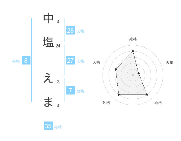 中塩 えまさんの天格は28画の1点!