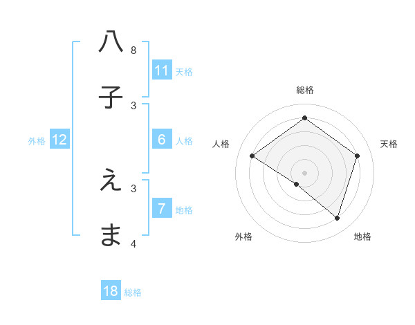 八子 えまさんの総格は18画の4点!
