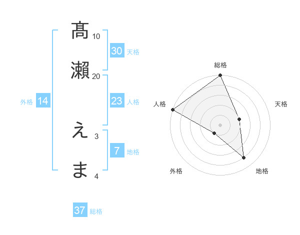 髙瀨 えまさんを姓名の画数から五運を鑑定