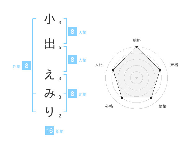 小出 えみりさんの総格は16画の5点!