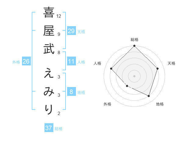 喜屋武 えみりさんの総格は37画の5点!