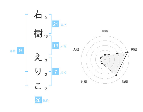 右樹 えりこさんを姓名の画数から五運を鑑定