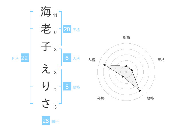 海老子 えりささんの天格は20画の1点!