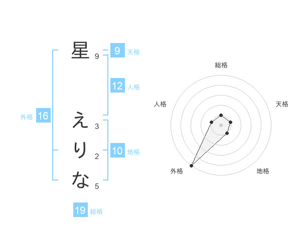 星 えりなさんの外格は16画の5点!