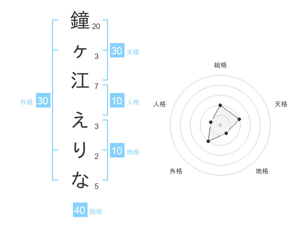 鐘ヶ江 えりなさんの総格は40画の2点!