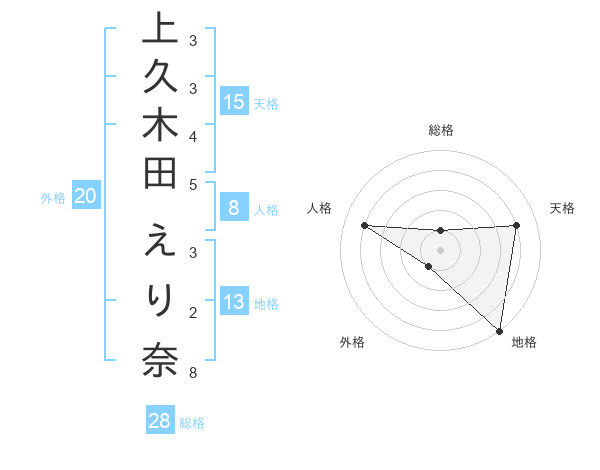 上久木田 えり奈さんの総格は28画の1点!