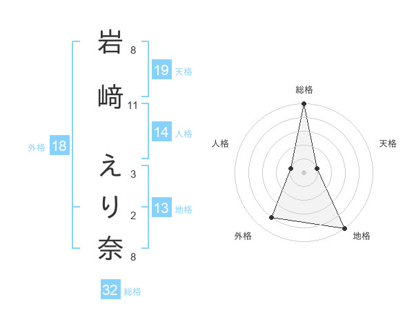 岩﨑 えり奈さんを姓名の画数から五運を鑑定