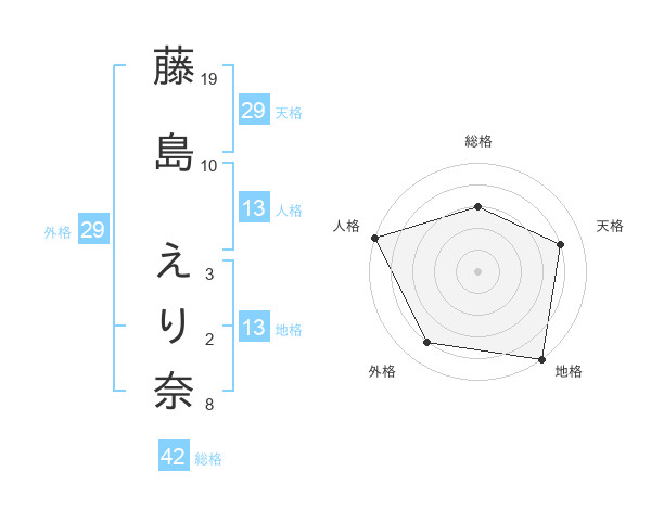 藤島 えり奈さんを姓名の画数から五運を鑑定