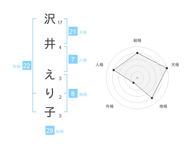 沢井 えり子さんを姓名の画数から五運を鑑定