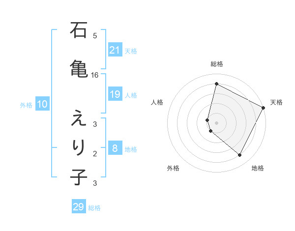石亀 えり子さんを姓名の画数から五運を鑑定