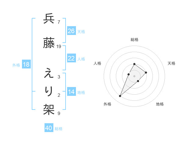 兵藤 えり架さんの総格は40画の2点!