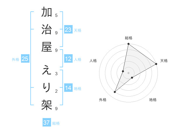 加治屋 えり架さんを姓名の画数から五運を鑑定