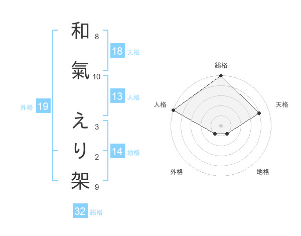 和氣 えり架さんの総格は32画の5点!