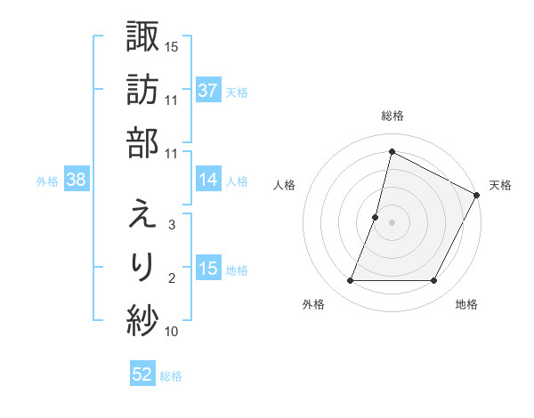 諏訪部 えり紗さんの天格は37画の5点!